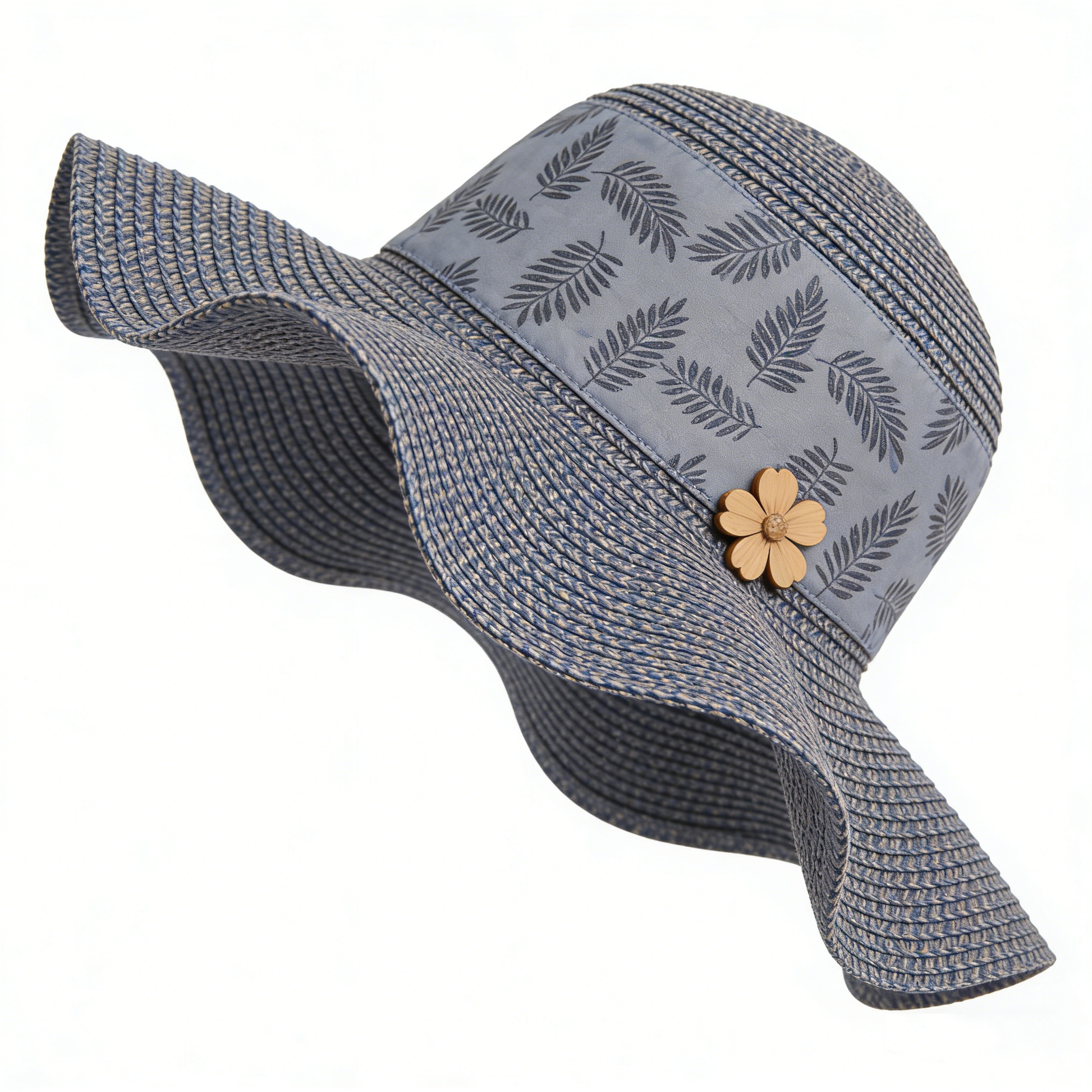 Blue Palm Leaf Straw Bucket Hat
