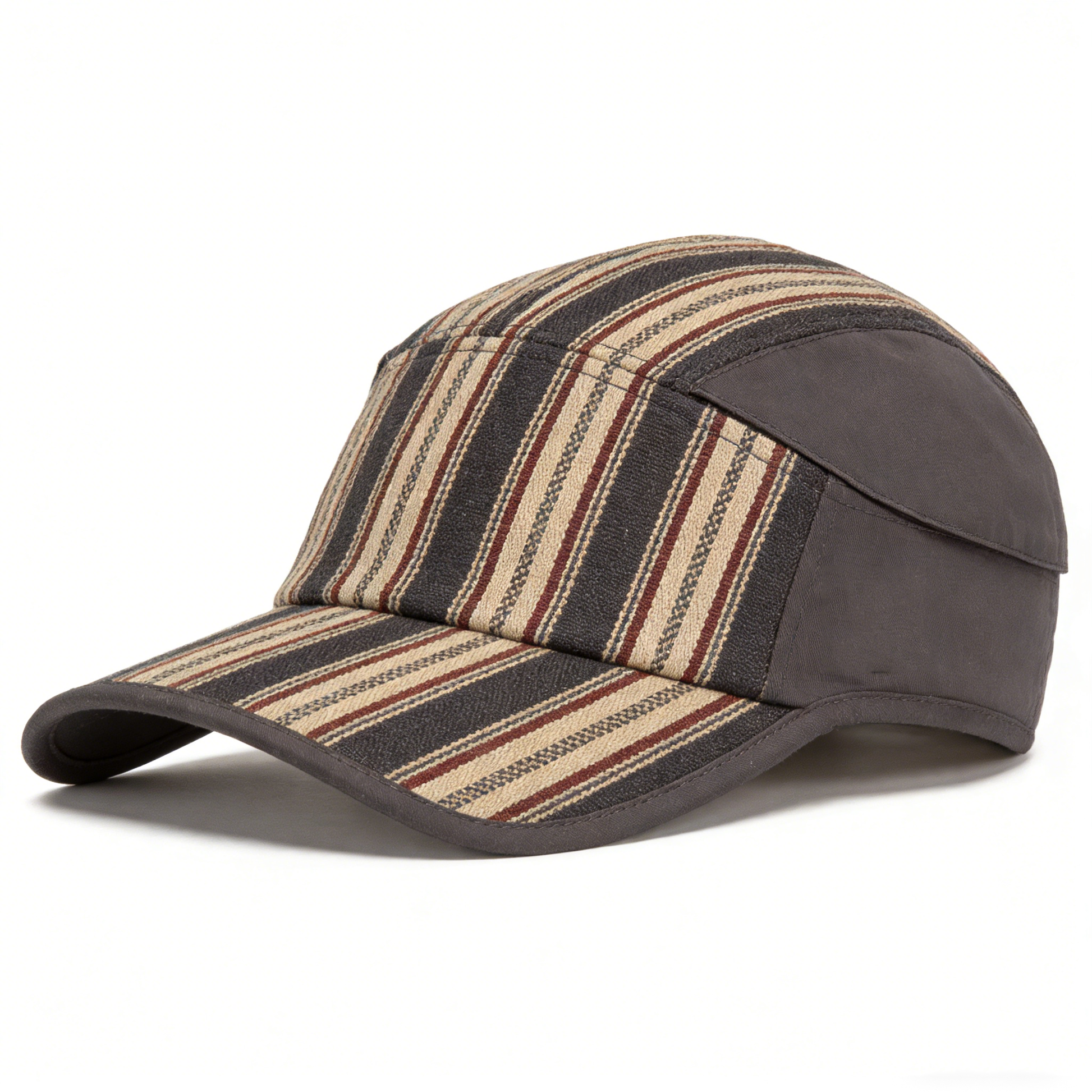 The Stripe Patrol Cap blends a vintage-inspired multi-stripe panel design with a structured flat-top silhouette. Its earthy color palette and military-style profile deliver a rugged, retro aesthetic, making it a standout accessory for casual urban looks or outdoor adventures.